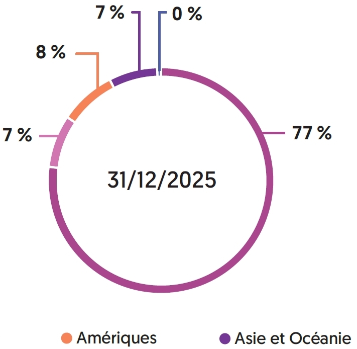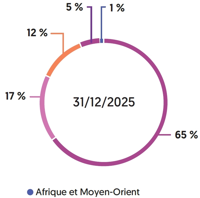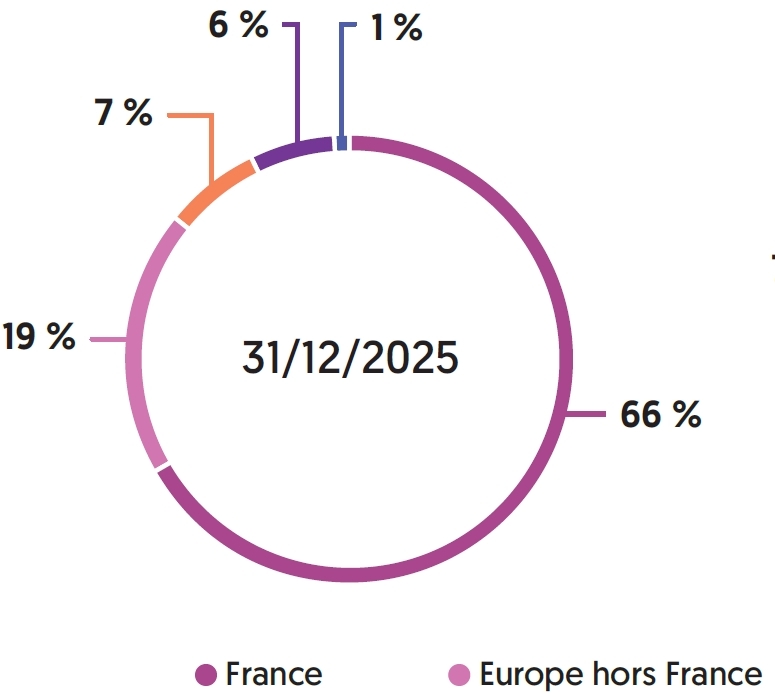 Les expositions de la classe d’actifs « établissements financiers » représentent 4 % des expositions brutes totales du Groupe BPCE, soit 62 milliards d’euros au 31 décembre 2025, avec 66 % des expositions situées en France.