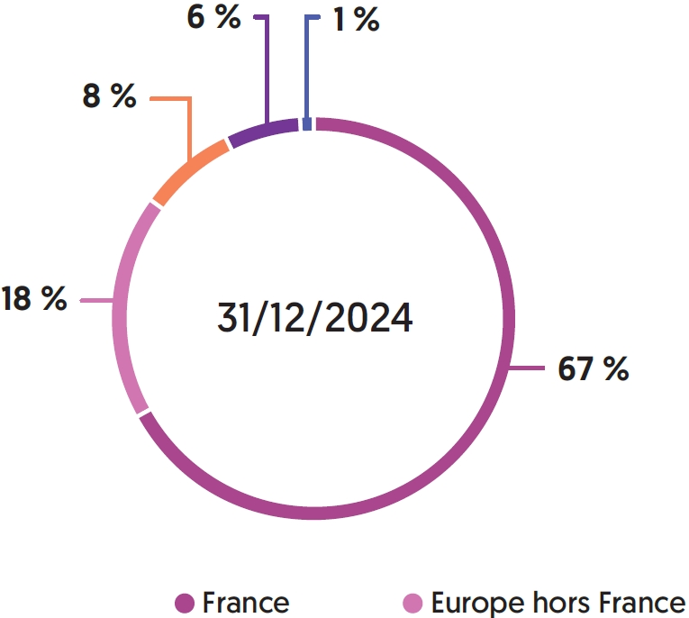 L’activité du Groupe BPCE se concentre essentiellement en France, avec une exposition brute de 1 186 milliards d’euros, soit 80 % du total. Les expositions hors France se répartissent principalement entre les États-Unis (6 %) et d’autres pays (14 %).