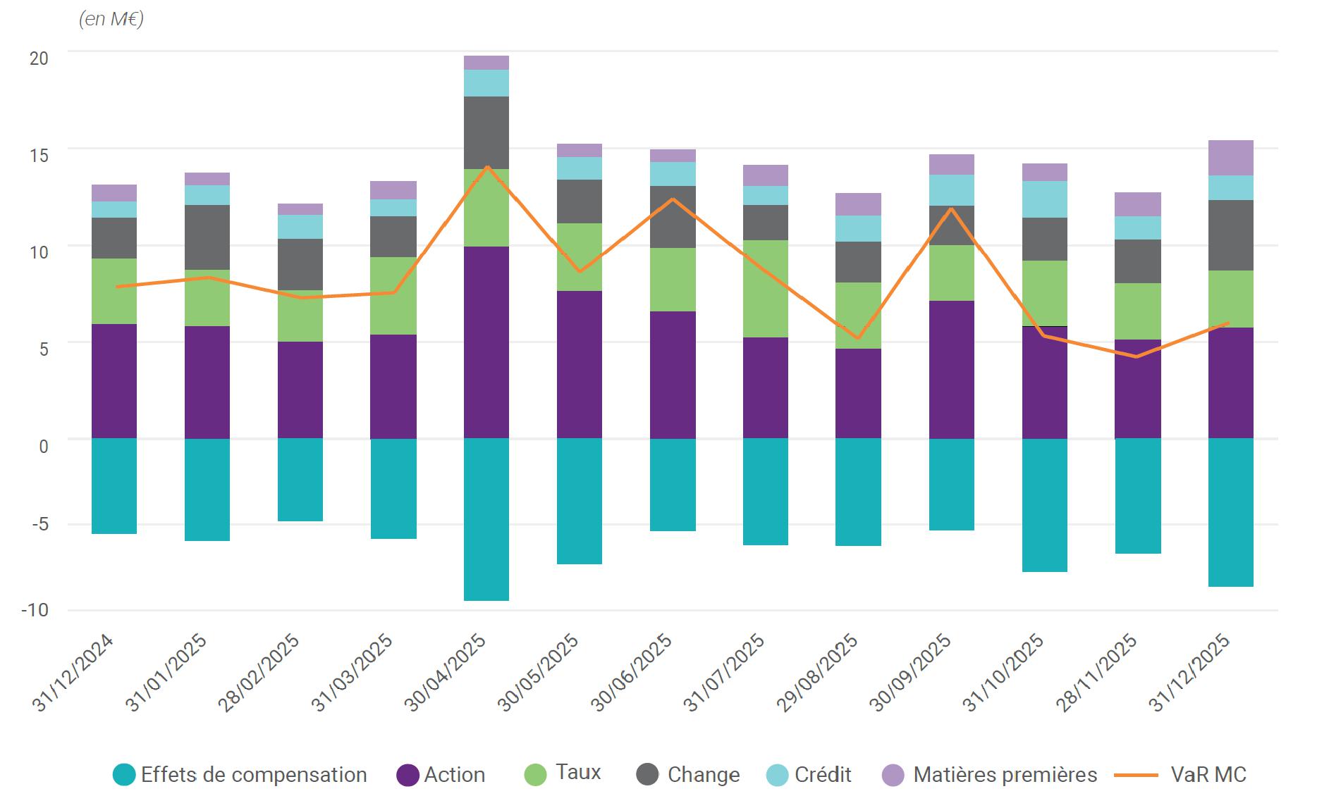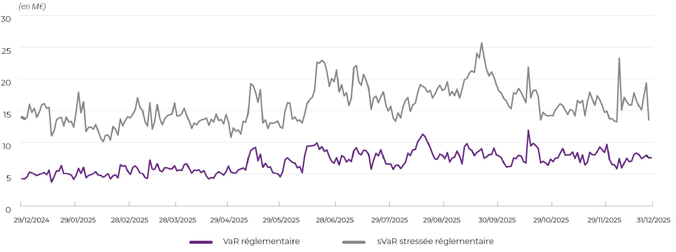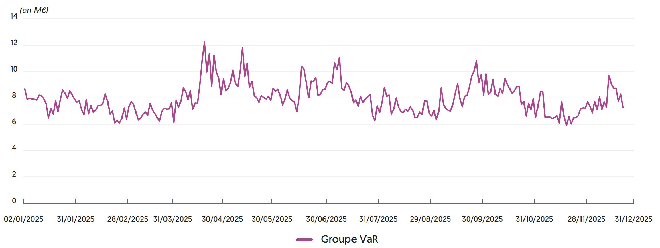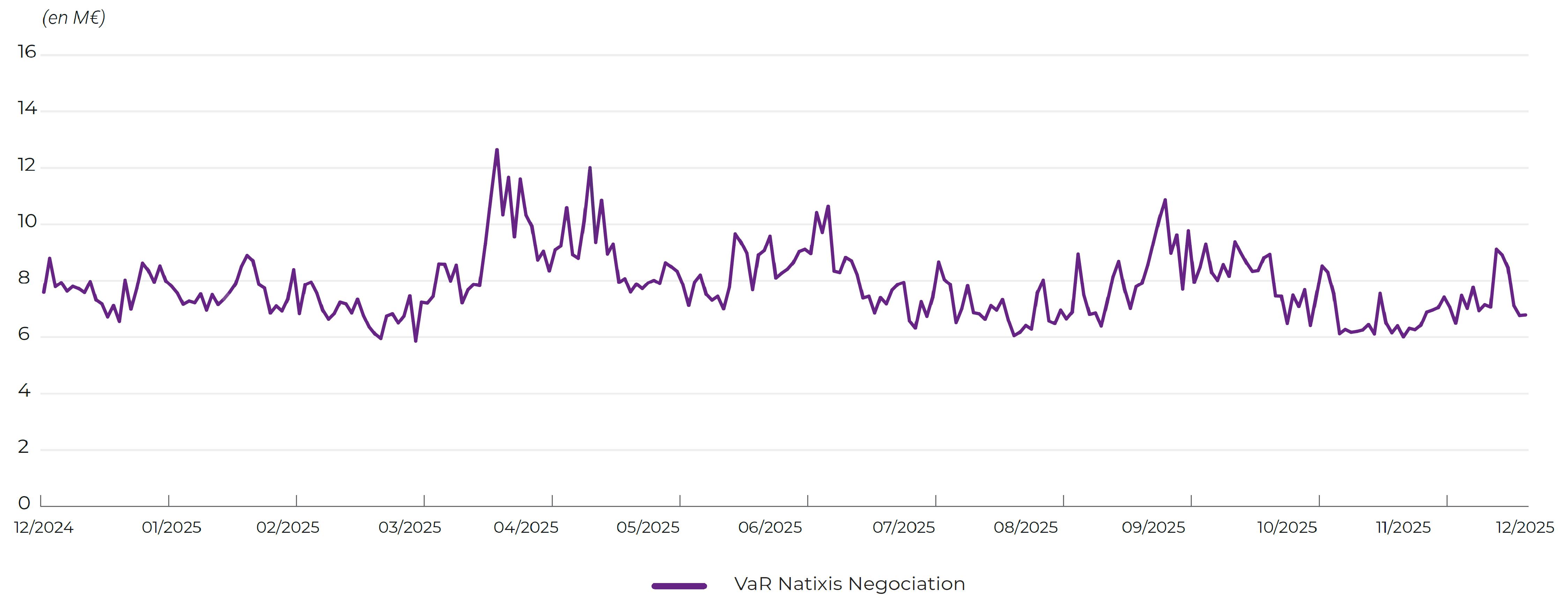 À fin 2025, les risques de marché pondérés s’élèvent à 18 milliards d’euros, soit environ 4 % du total des risques pondérés du Groupe BPCE.