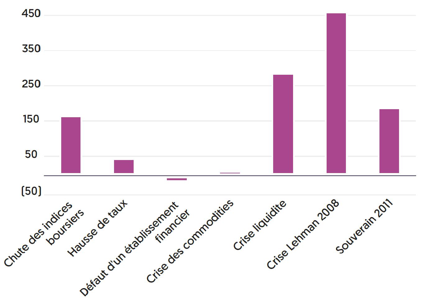 En effet, les positions sur les marchés obligataires, de devises, de matières premières, d’actions et sur des actifs non cotés ou non classiques peuvent subir l’impact de variations des prix et de la liquidité. Des configurations de marché défavorables ou des périodes de crise peuvent entraîner des pertes sur les instruments de trading et de couverture (swaps, futures, options, produits structurés) et rendre difficiles la vente d’actifs, ce qui pourrait affecter les résultats et la situation financière du groupe. De même, les baisses prolongées des marchés et/ou les crises violentes peuvent réduire la liquidité de certaines catégories d’actifs et rendre difficile la vente de certains actifs et, ainsi, entraîner des pertes importantes.