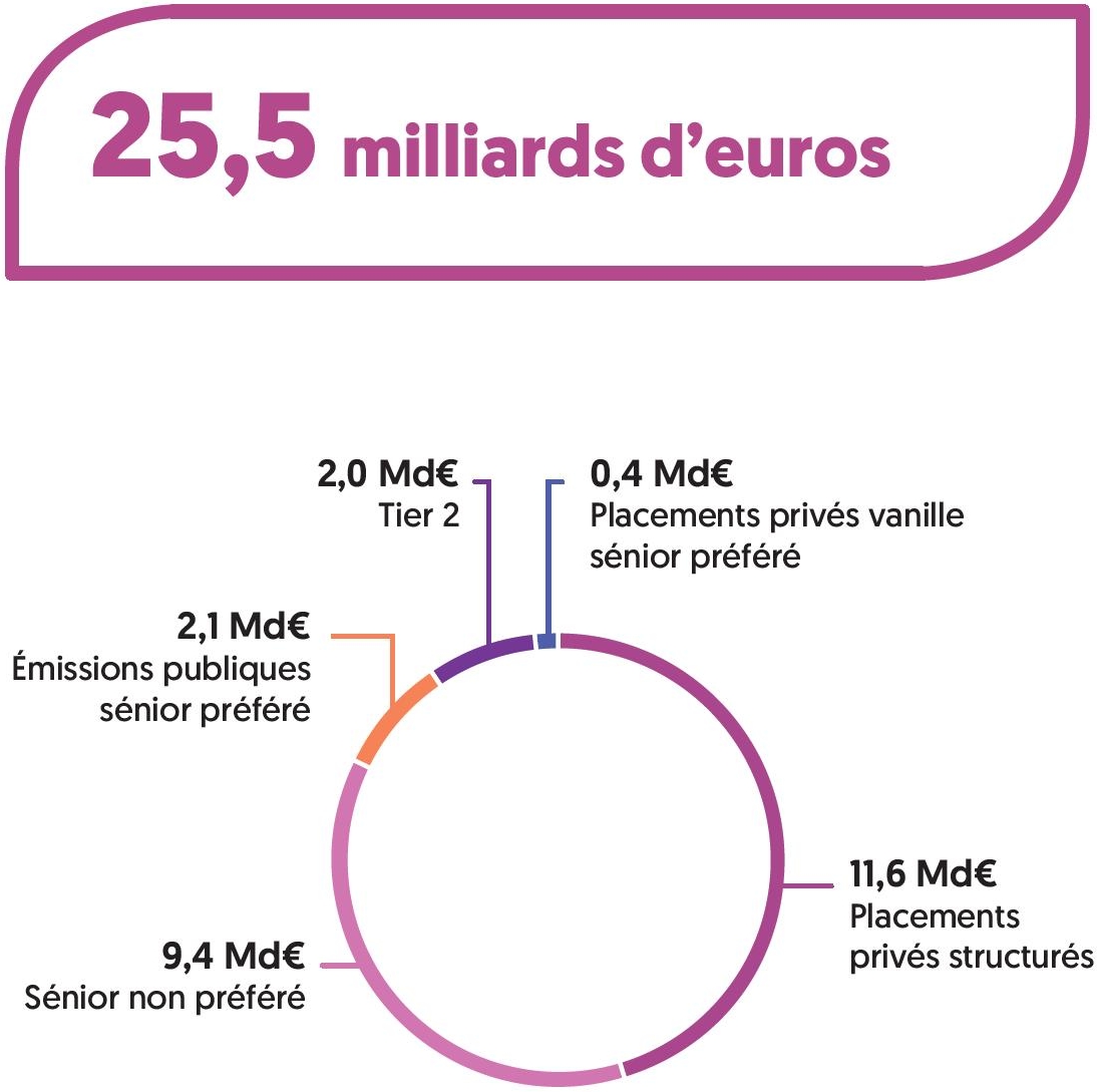 Au 31 décembre 2025, les actifs financiers à la juste valeur par le résultat s’établissent à 240 milliards d’euros (227 milliards détenus à des fins de transaction), et les passifs à 234 milliards d’euros (177 milliards détenus à des fins de transaction).