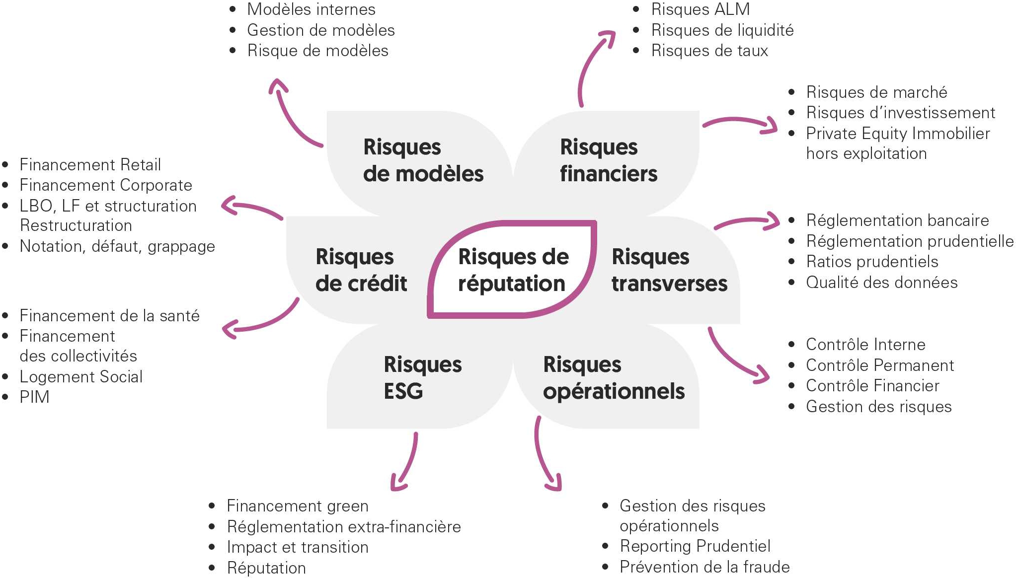 Le Groupe BPCE est exposé à des risques réputationnels en raison de la diversité de ses activités bancaires, financières et d'assurance exercées à l'échelle internationale. Ce risque peut survenir à la suite d’allégations concernant la promotion et la commercialisation de ses produits et services, la nature des financements et investissements réalisés, ainsi que la réputation des partenaires du groupe. De plus, des préoccupations pourraient émerger autour de la stratégie environnementale et des politiques sociales du Groupe BPCE ou de sa gouvernance, tels qu’abordés en section 16. Enfin, la réputation du Groupe BPCE pourrait également être compromise par des actions d'entités externes, telles que des actes de cybercriminalité ou de cyberterrorisme, des fraudes internes ou externes, ou des détournements de fonds.