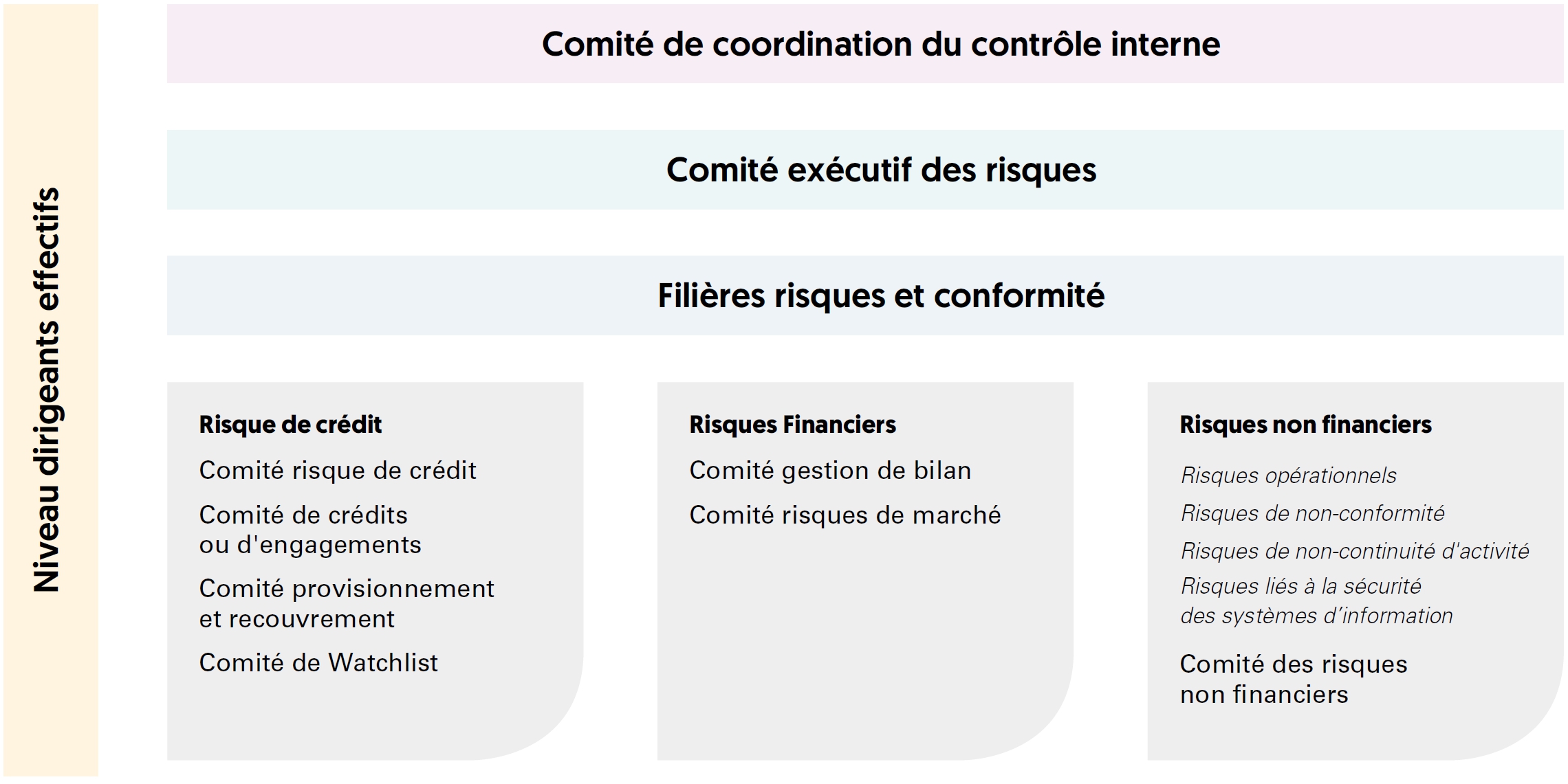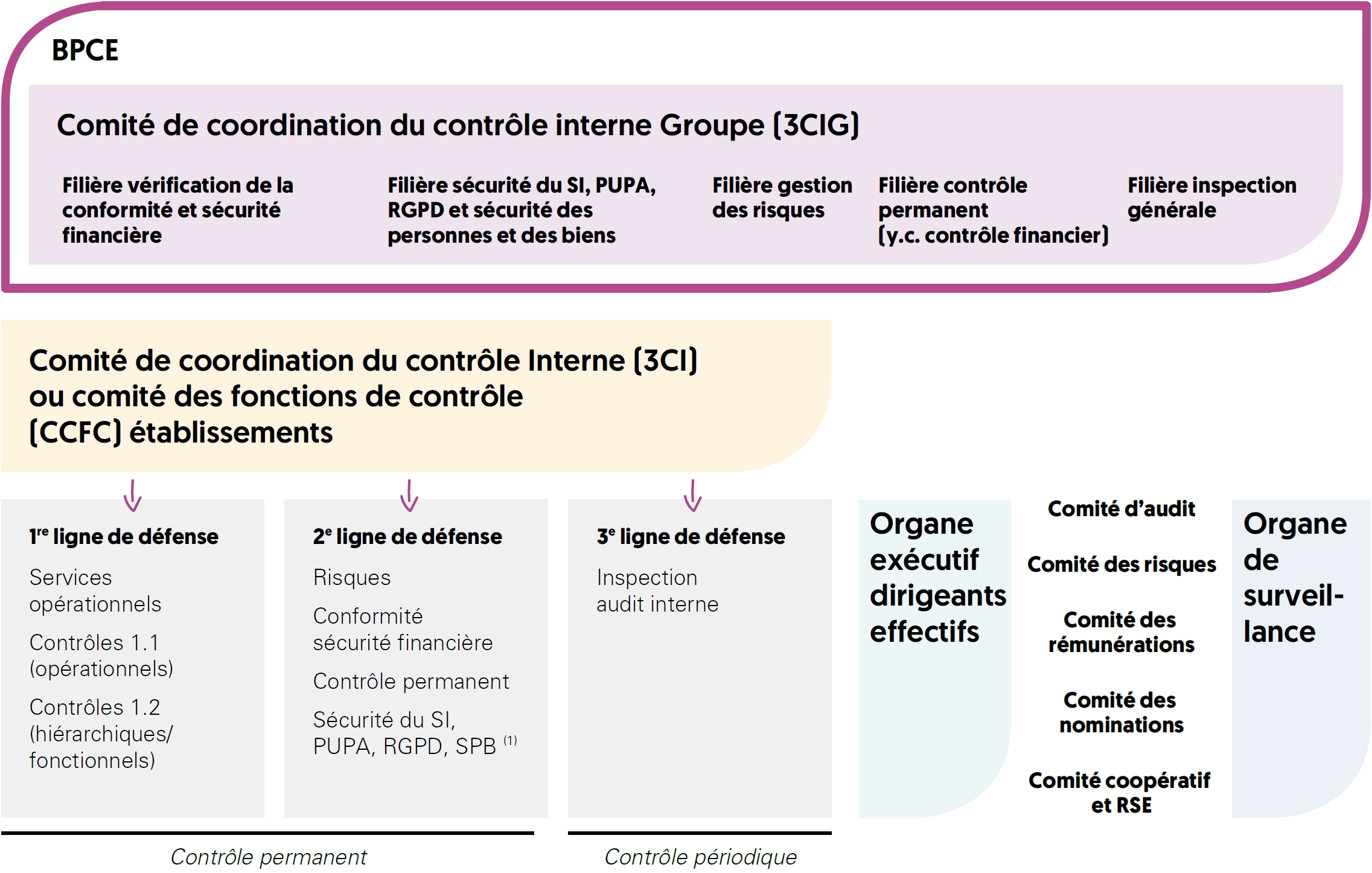 - un deuxième niveau réalisé par des unités indépendantes relevant des fonctions Risques, Conformité ou Contrôle Permanent. Pour le Pilier III, ces travaux sont réalisés par le secrétariat général Groupe (Contrôle Financier Groupe) et la direction des Risques (Contrôle Permanent des Risques).